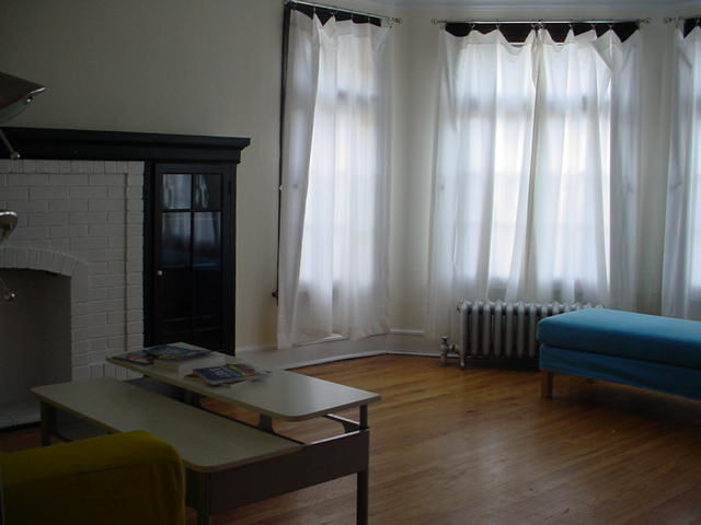 These have a Huge Living Room w/ Bay French Windows and a decorative fireplace. The Kitchens feature a dishwasher and an adjoining eating area which accommodates a table for 2-3 people. There’s a front hall closet and the bathroom is conveniently located between the 2 bedrooms. One bedroom is Huge which will accommodate a King-sized bed, 2 smaller nightstands and a triple dresser, has a large closet and a nook for a desk. There are 3 windows in that bedroom. The other bedroom is smaller by comparison but will accommodate a queen-sized bed, 2 nightstands and a double dresser.
